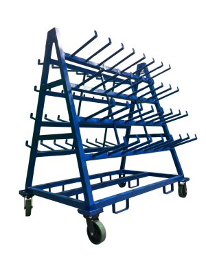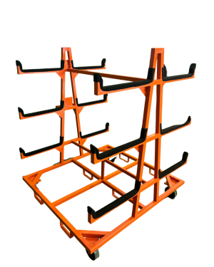 Carrinho para transporte de vidros com alojamentos em PVC injetado e em perfil esponjoso